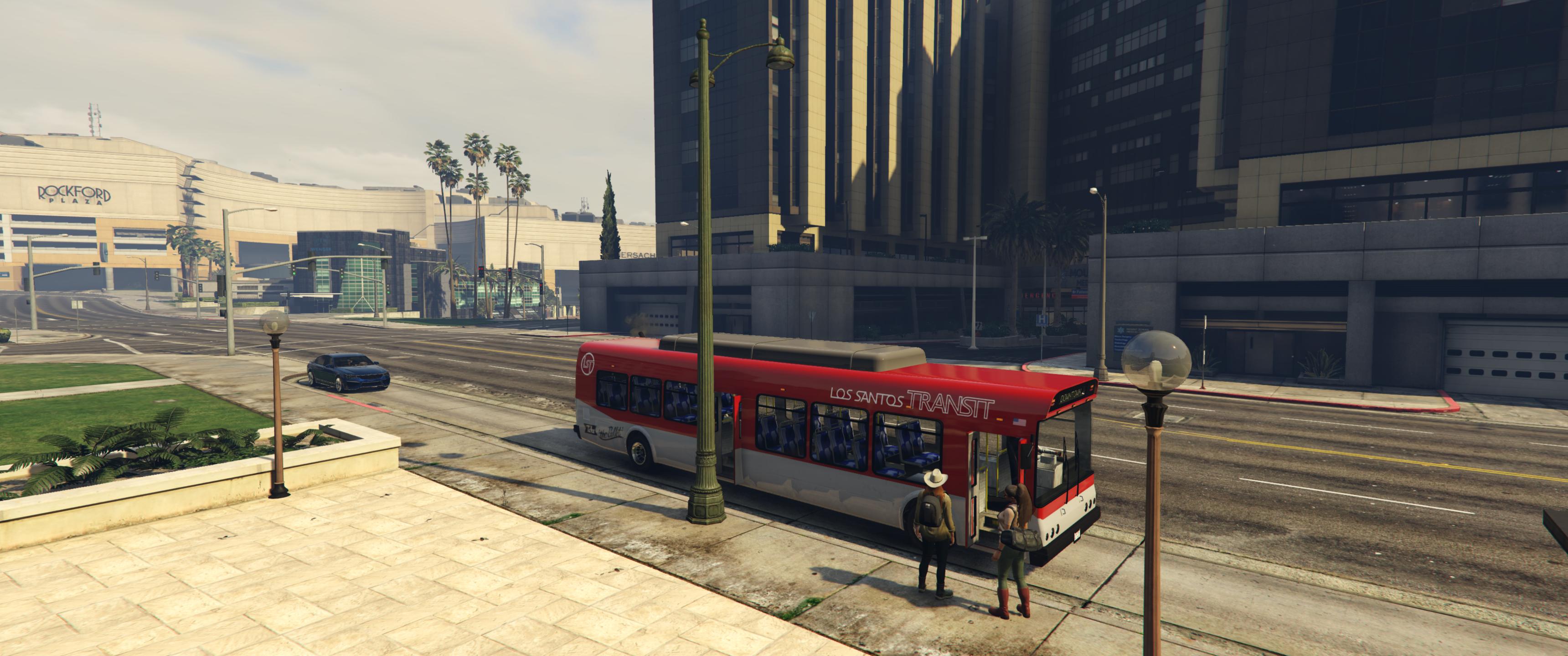 My next project was a little more ambitious. I wanted to create a set of Bus driver missions. You’d start the mission, get into your bus and drive to a set of stops, collecting or dropping off passengers at each one. This involved a lot more discovery of the API, which offers a surprising number of useful functions like getting the closest position on a road or pavement(sidewalk) for spawning people or cars. There was a fair degree of frustration with getting AI passengers to actually get onto the bus, as they have a habit of forgetting the command you gave them if they are unable to complete it. This led to situations where multiple passengers would race to the bus door, the first would get on, and the rest would then proceed to just stand around waiting for nothing at all. For a mission where I wanted to eventually time the player, this wasn’t going to cut it. I ended up resorting to just teleporting the passengers inside if they took too long, which didn’t look all that nice but at least prevented the interruption of the flow of the mission.